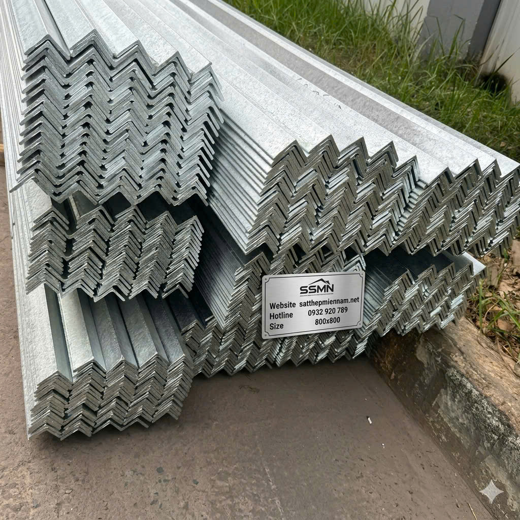 - Thép hình V mạ kẽm : giá thành trung bình, có phủ lớp kẽm chống oxy hóa, phù hợp công trình ngoài trời.